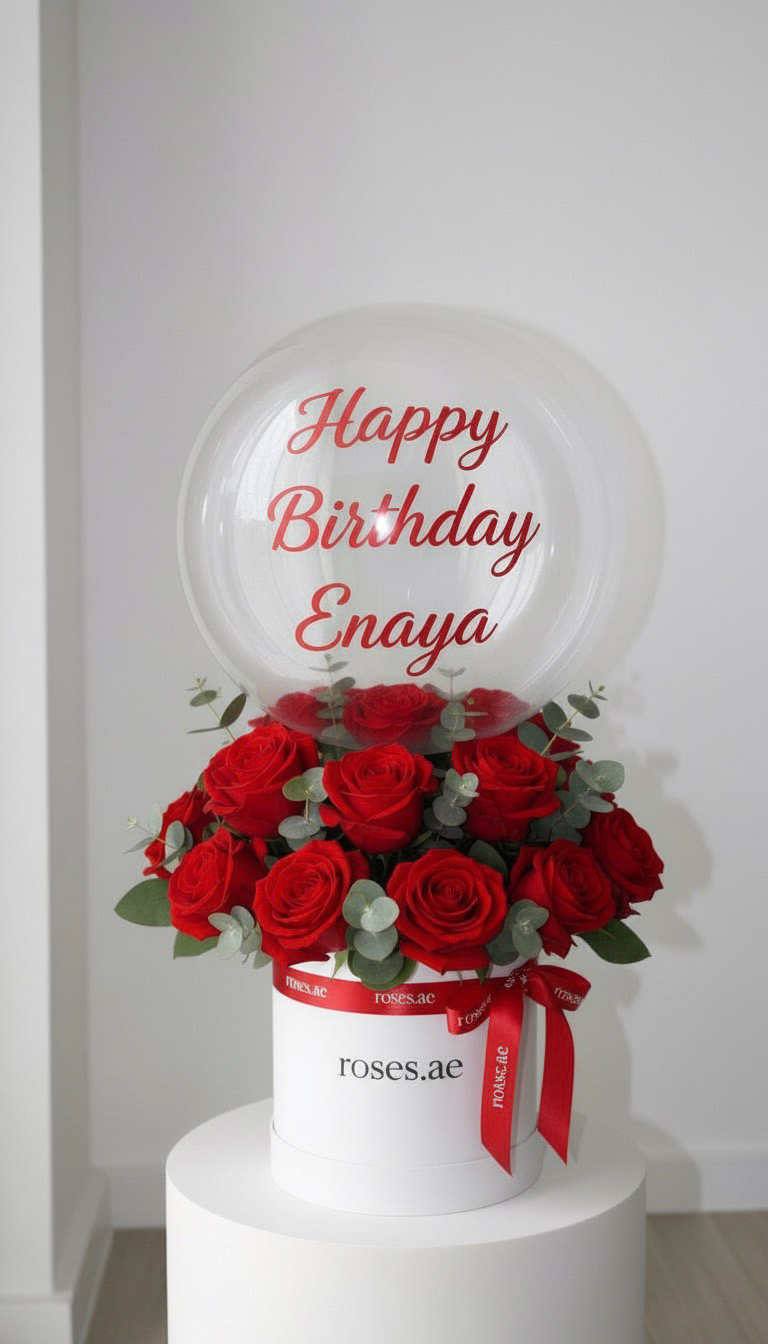 Bubble balloon box & red roses
